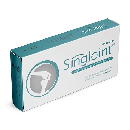 Singjoint Medical Sodium Hyaluronate is indicated for the treatment of symptomsof osteoarthritis of knee. By replacing and supplementing the pathological synovia fluid in the osteoarthritic joints, it reduces pain and improves joint function..